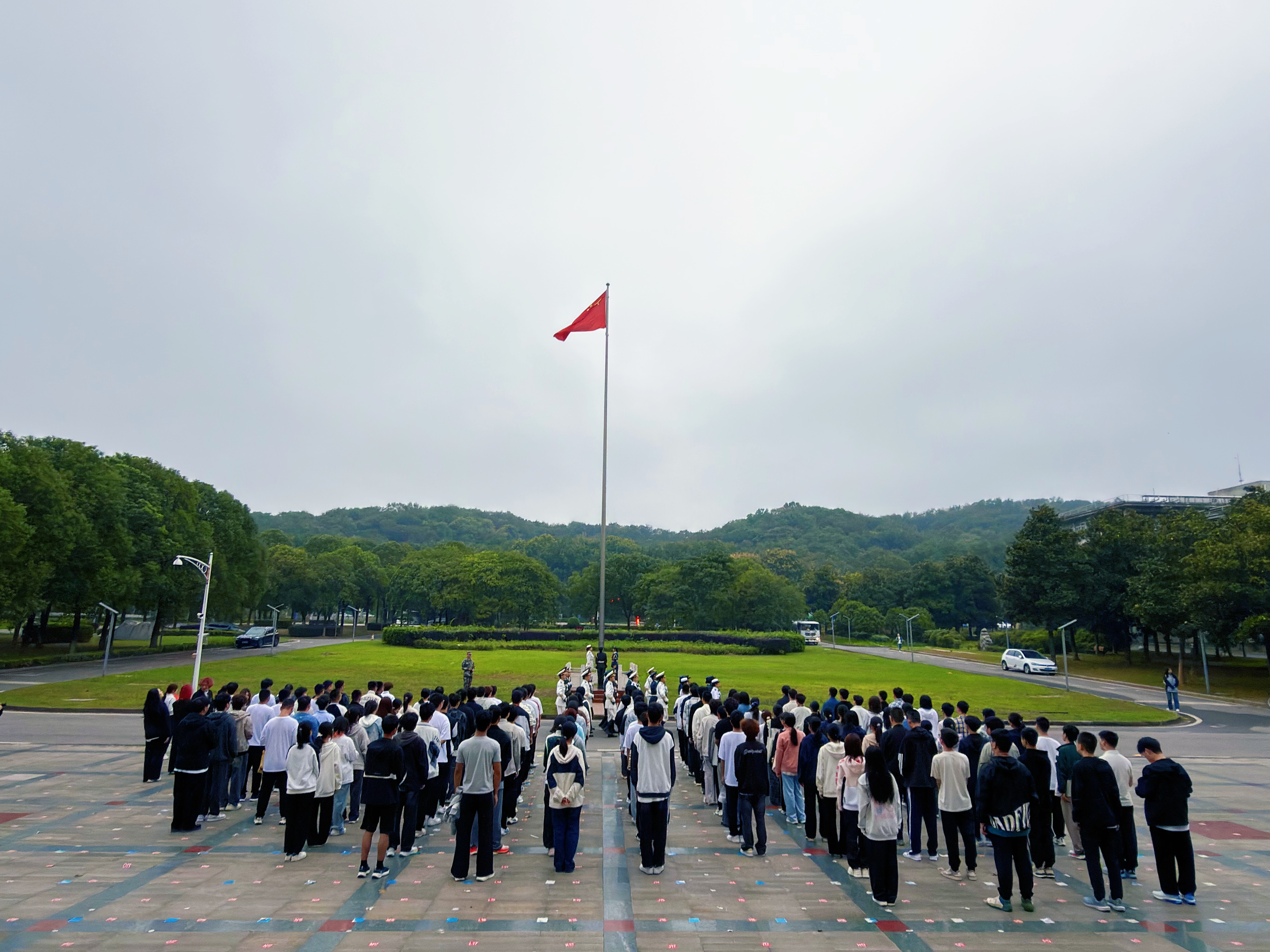 金秋送爽,丹桂飘香,10月13日清晨,海洋科学学院于滨江楼南广场举行升旗仪式。学院副书记水泱、学办主任曹芸、辅导员任尤楠以及2025级全体本科新生参加此次活动。仪式在铿锵的出旗步伐中拉开序幕,全体师生高唱国歌,注视国旗在晨风中冉冉升起。学生代表带来诗朗诵《以青春之名,赴海洋之约》。他们诉说海洋学子对深蓝的向往:从先辈勘探海洋的无畏,到今时科研攻关的执着,字里行间,满是青年接棒海洋事业的热忱。水泱在国旗...
