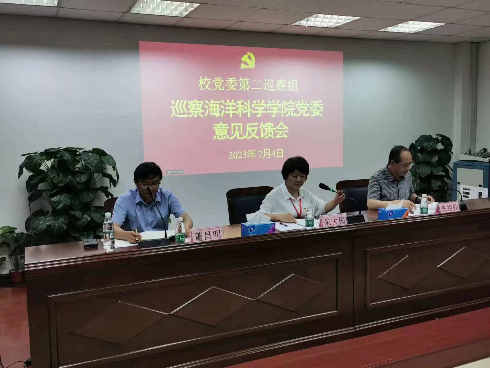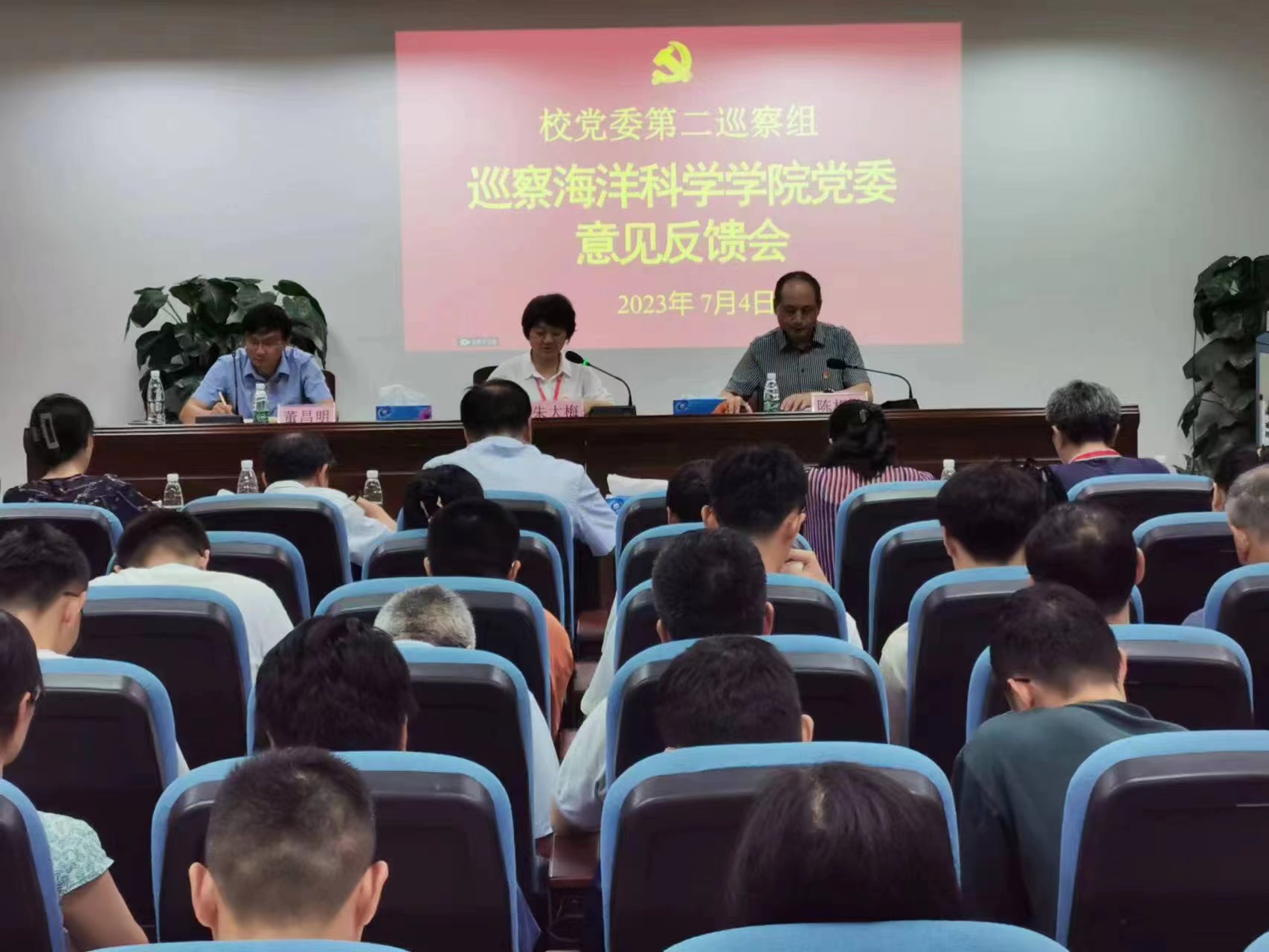 根据校党委巡察工作安排,2023年7月4日,校党委第二巡察组向海洋科学党委反馈巡察情况。校党委第二巡察组组长朱大梅、校党委巡察工作办公室主任汪保安、校党委组织部长张新厂、校纪委监督检查处处长李萍、校党委第二巡察组副组长许尝君及第二巡察组成员出席会议,学院党政领导班子成员、全体教职员工以及学生党员代表参加会议。反馈会在文德楼S517举行。院党委书记陈相勤主持会议。
