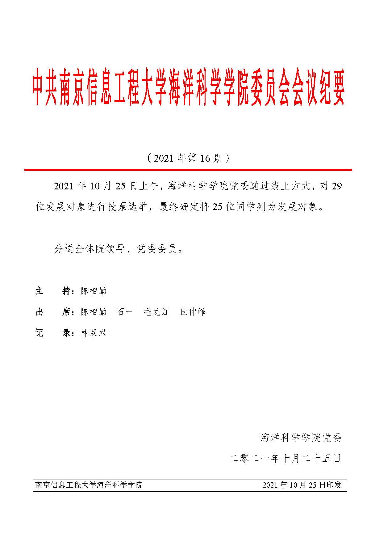 上一条:海洋科学学院党委会会议纪要(2021年第17期)