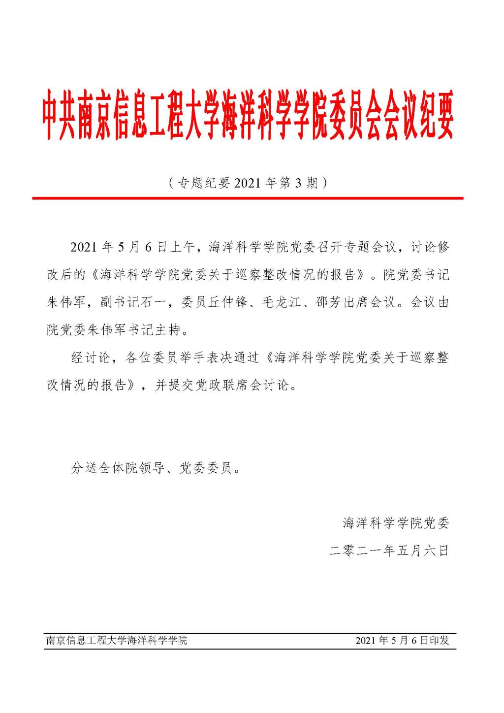 上一条:海洋科学学院党委会会议纪要(2021年第8期)