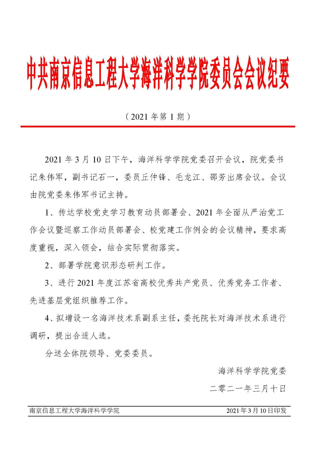 上一条:海洋科学学院党委会会议纪要(2021年第2期)