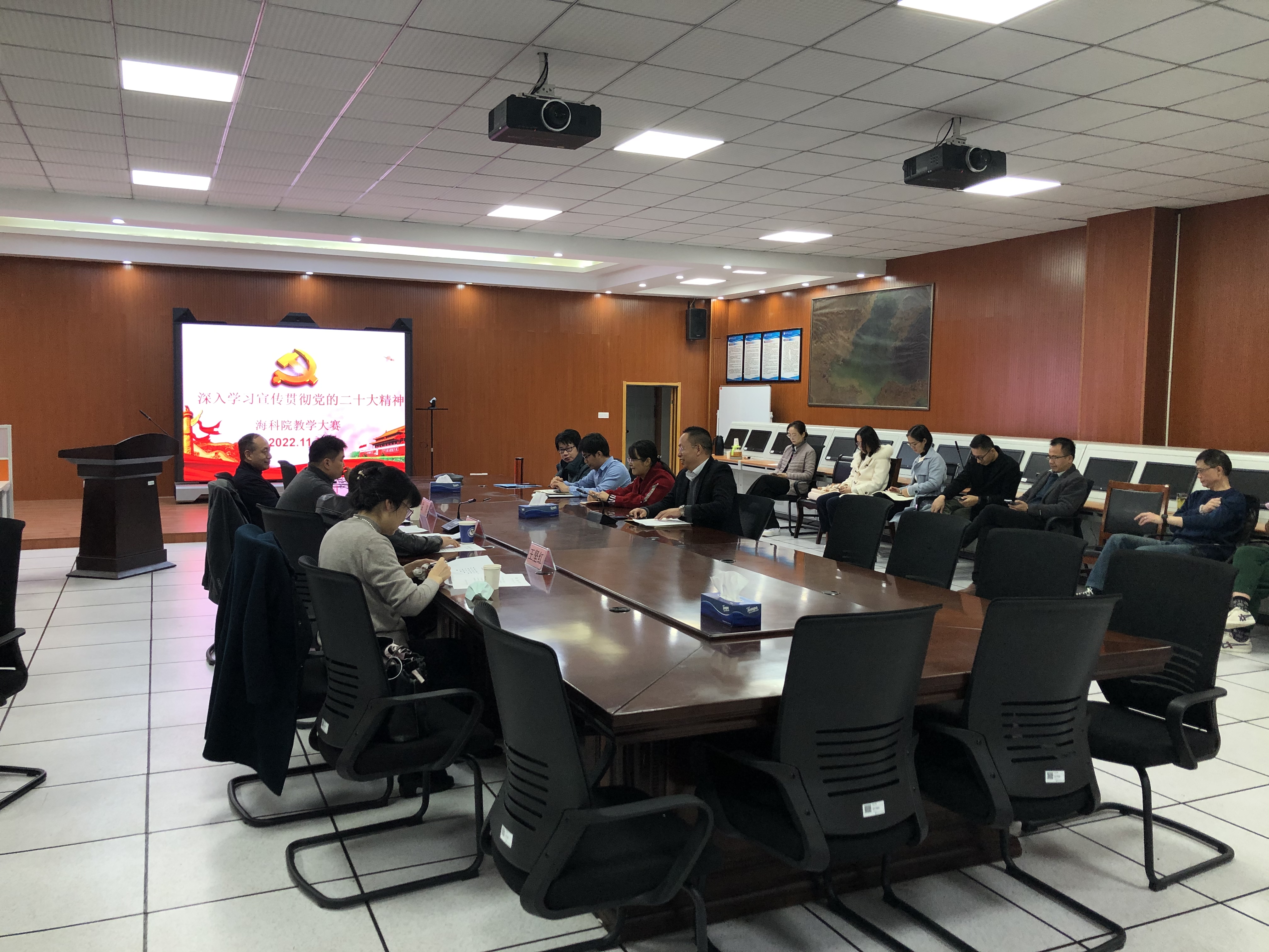 11月22日早上9:00,为深入学习宣传贯彻党的二十大精神,深化高等教育综合改革,进一步提升青年教师的教学能力和业务水平,促进课程团队和教学团队建设,海洋科学学院在文德楼S519举办了青年教师教学(团队)竞赛。