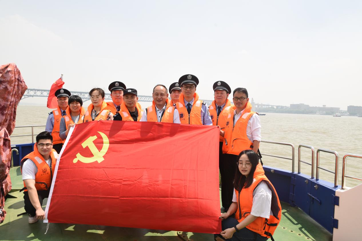 2022年5月20日,小满阳光明媚,江面水气轻柔。海洋科学学院部分师生党员应南京市公安局水上分局大厂派出所邀请参加“长江佑岸”支部党建联盟活动,南京市公安局江北分局玉带派出所部分党员共同参与。
