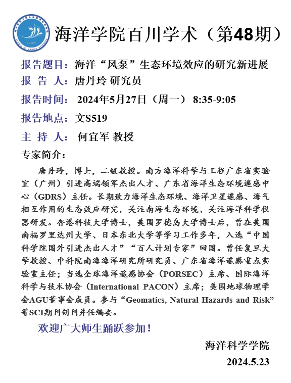 上一条:海洋学院百川学术(第49期):特邀自然资源部第二海洋研究所何贤强研究员作学术报告
