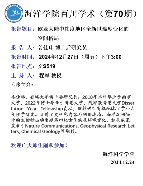 下一条:海洋学院百川学术(第69期):特邀香港大学柳中晖教授作学术报告