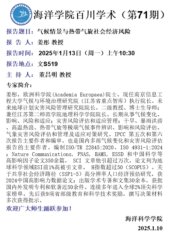 上一条:海洋学院百川学术-海洋前沿专题(第6期):特邀中国科学院海洋研究所孙卫东研究员作学术报告