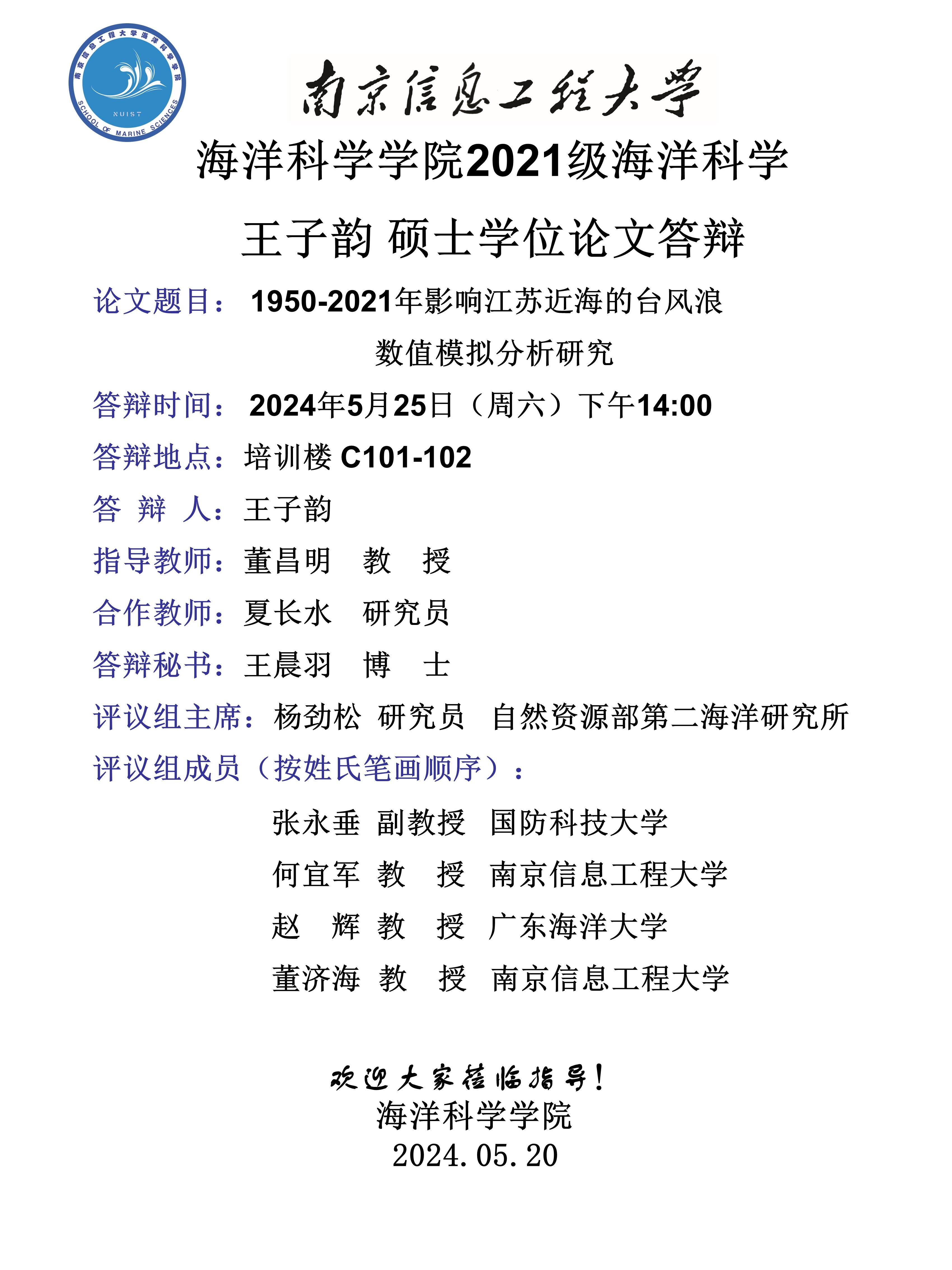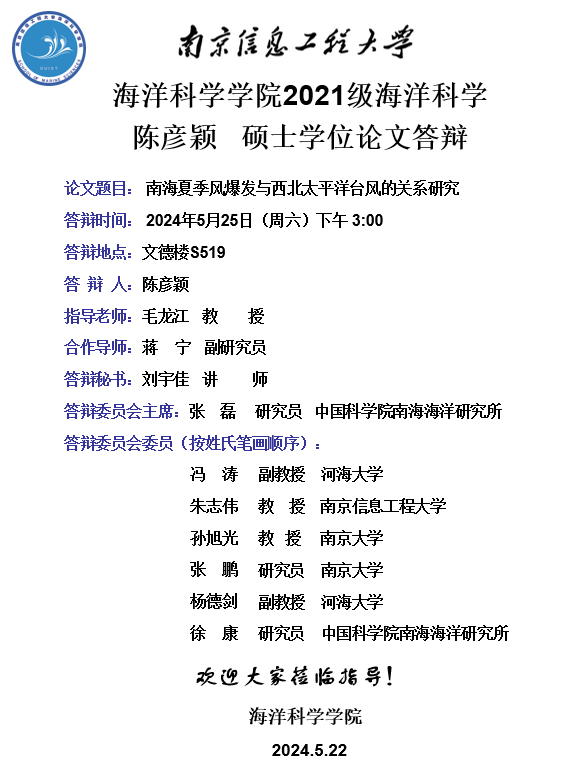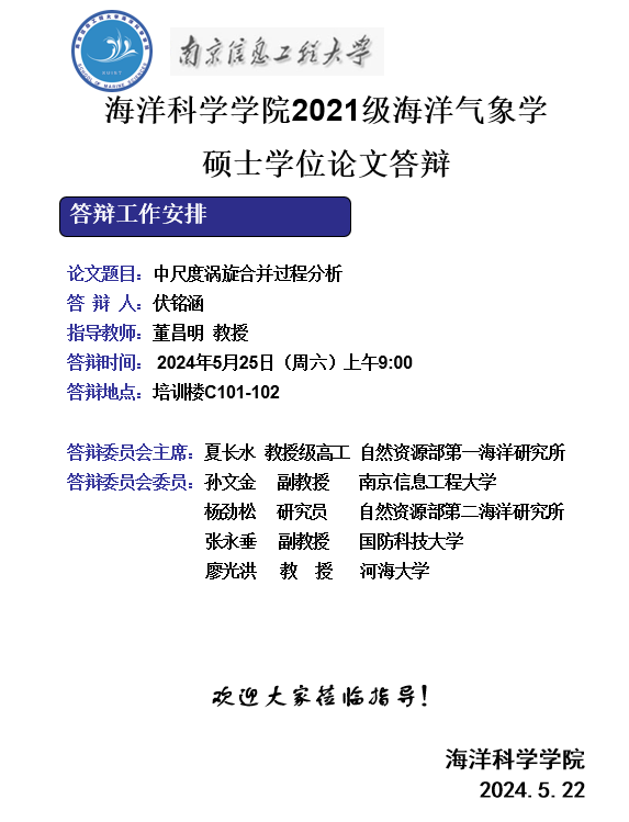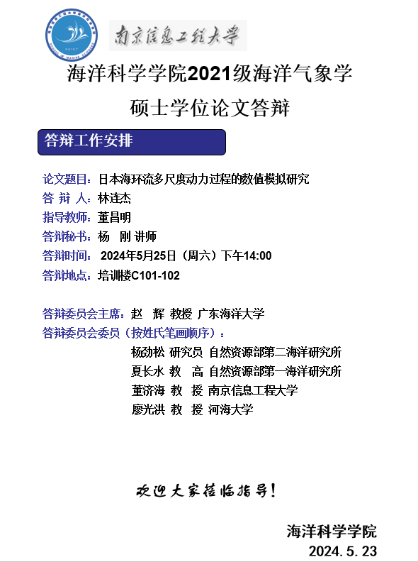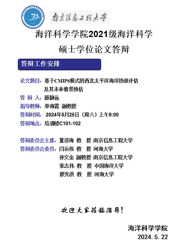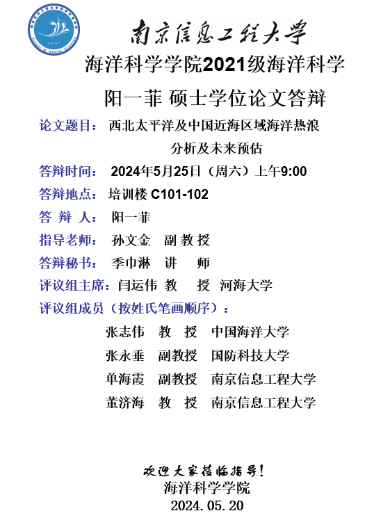上一条:2020级海洋气象学博士答辩-陆晓婕