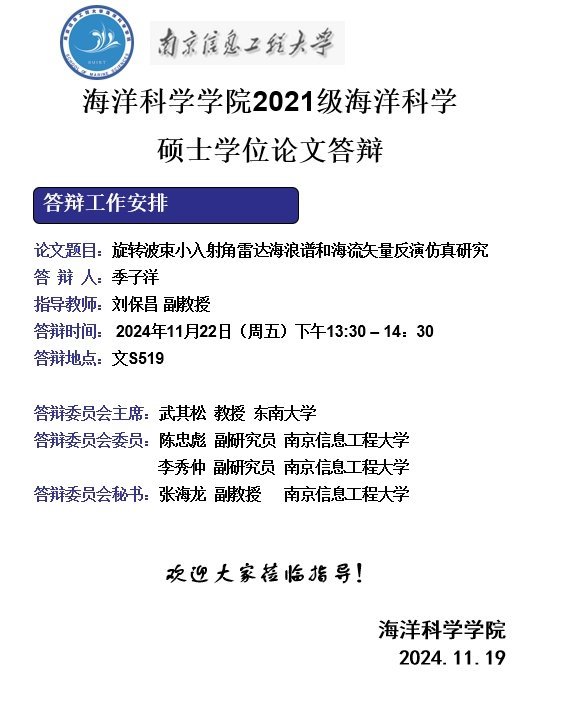 下一条:2023级海洋气象学博士开题-黄旭东