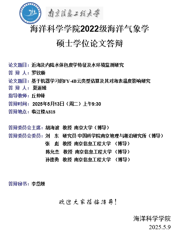 上一条:2023级海洋气象学博士开题-王钰