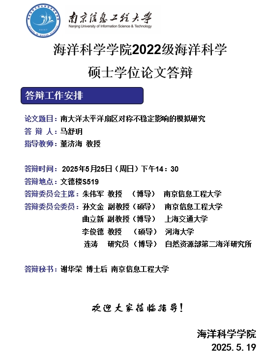 来源:海洋科学学院 时间:2025-05-20 作者: 点击: