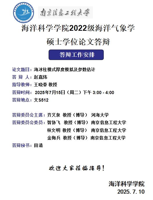 上一条:2020级海洋气象学博士预答辩-赵晓露