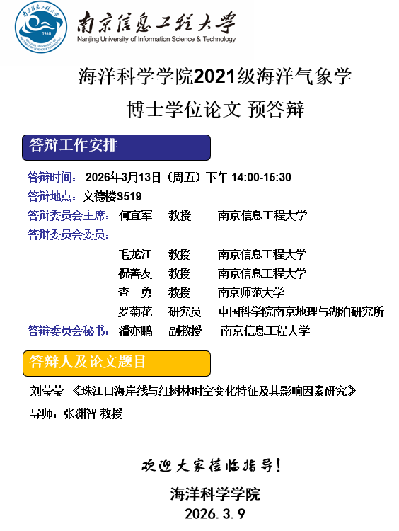 下一条:2024级海洋气象学博士开题-方烨