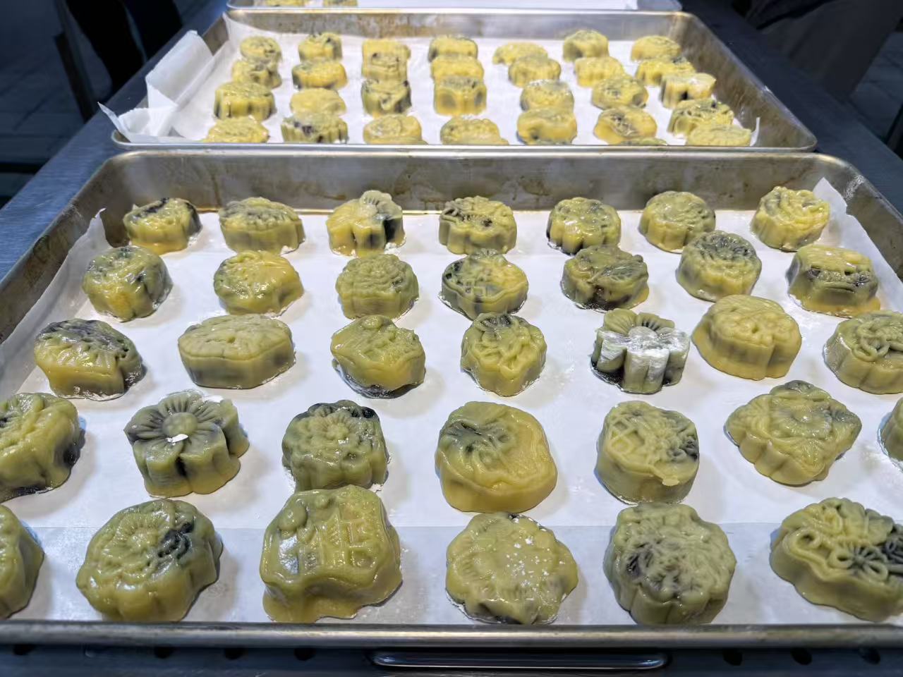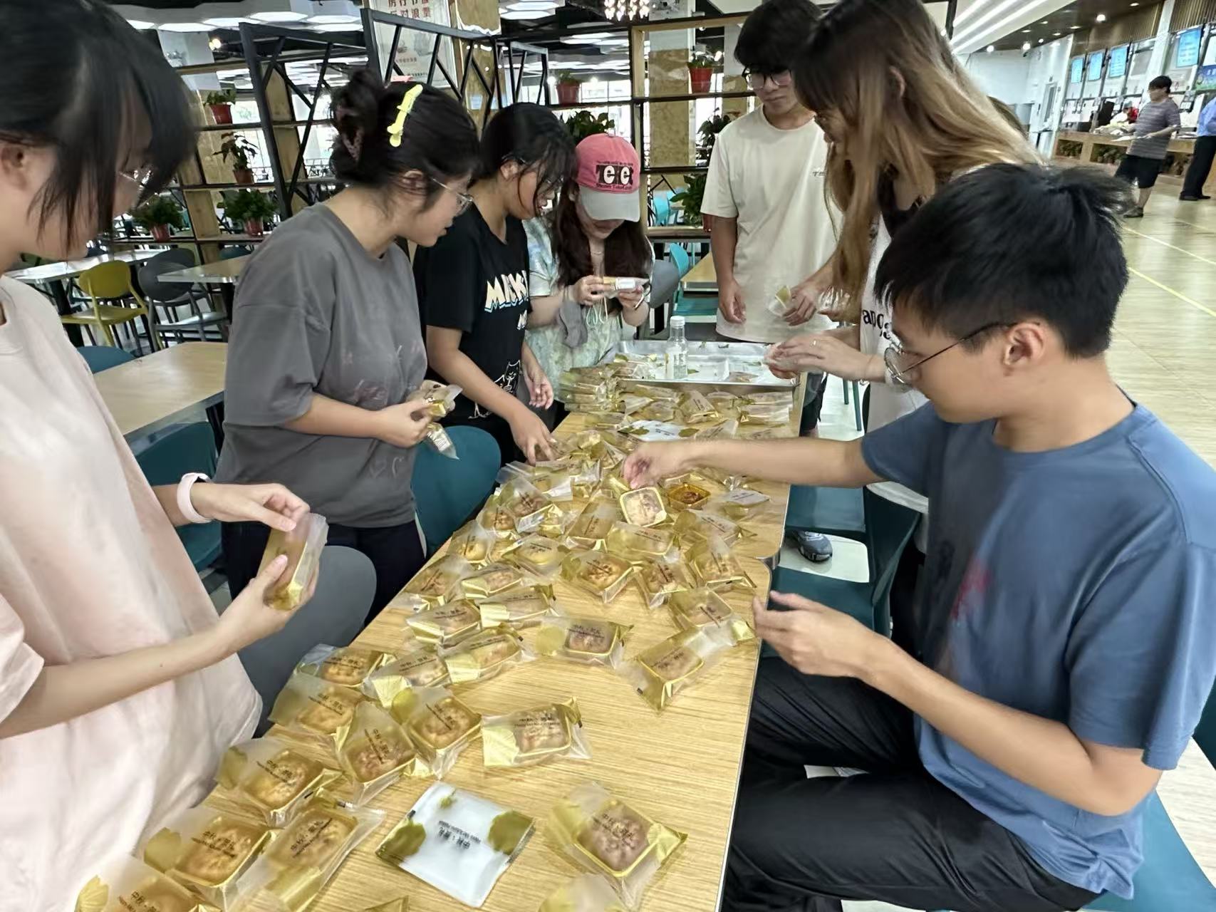 活动现场筹备有序,面粉、馅料、模具等制作材料分类摆放整齐。师生们沉浸式投入月饼制作全流程:从揉制面团、调配馅料,到按压塑形、印制吉祥图案,每一步操作细致严谨。经烘焙,一炉炉香气四溢的月饼出炉。看到自己亲手做出的月饼,师生们体会到了手工制作的乐趣,纷纷拍照留念。同学们纷纷表示自己制作的月饼格外美味。大家精心将月饼封袋装盒,分享给2025级新生,将中秋祝福与校园温暖送到同学手中。