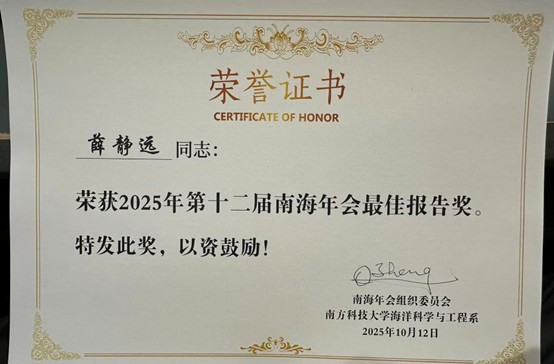 2025年10月10日至12日,2025南海年会(South China Sea Annual Meeting 2025)在深圳成功举办。南京信息工程大学海洋科学学院院长董昌明教授、金梅兵教授、张宁宁副教授以及博士生薛静远等师生代表参加了此次盛会。他们通过口头报告与海报展示等多种形式,系统呈现了学院在海洋气象、海洋环流、海洋生态等多个方向的最新研究进展与成果,受到与会同行的广泛关注与高度评价。
